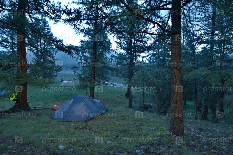 Россия. Республика Бурятия. Прохладный сумеречный рассвет на горной реке Тисса, левого притока реки Ока