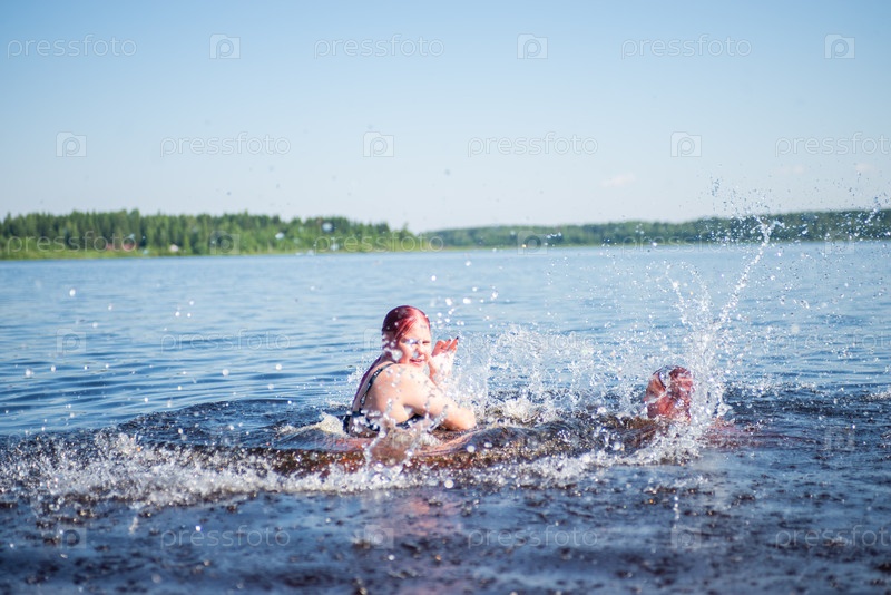 Девочки веселятся в воде в жаркий солнечный летний день