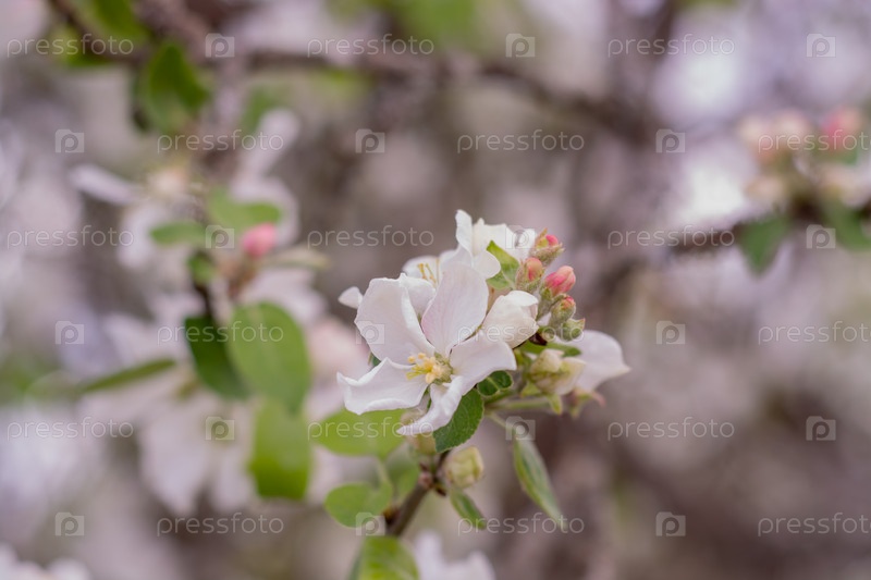 Весной в саду с белыми пышными цветами расцвела яблоня. Цветение яблони. Сад, В весеннее время в саду цветут яблоневые деревья с белыми буйными цветами. Яблочный цвет