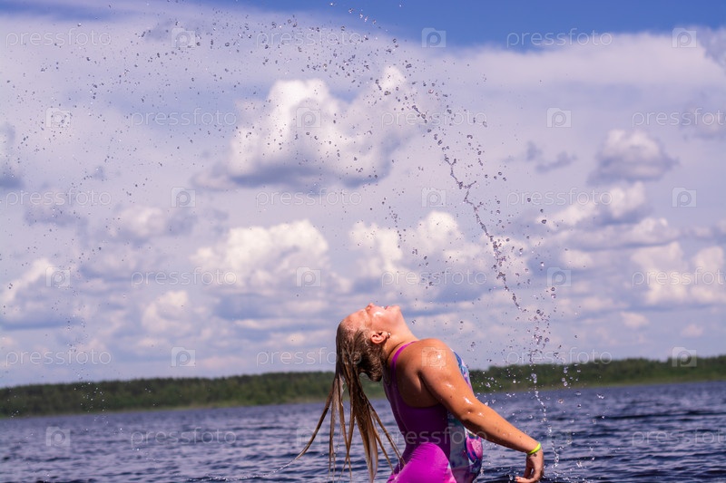 Девочка резвится в воде в жаркий солнечный летний день
