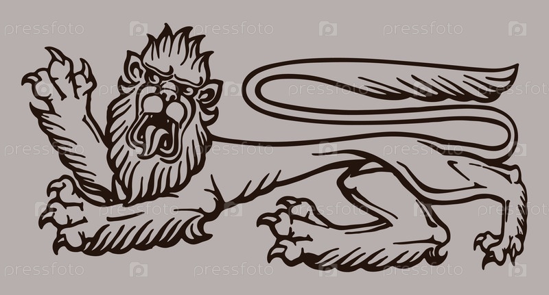 Векторный макет: средневековый геральдический лев герба (монстр)