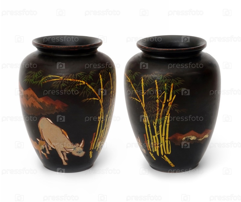 Вьетнамская деревянная сувенирная ваза с изображением, изолированным на белом фоне