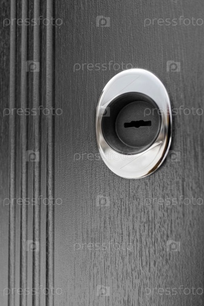 Металлическая входная дверь: изолированная деревянная поверхность и замочная скважина