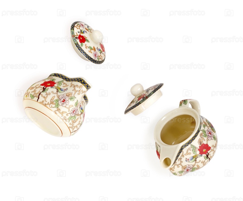 Фарфоровый чайник в китайском стиле изолирован на белом фоне Фарфоровый чайник в китайском стиле изолирован на белом фоне