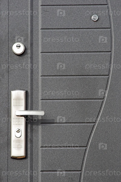 Поверхность металлической двери с замком и ручкой