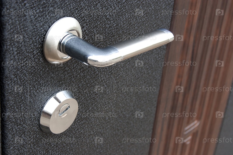 Поверхность металлической двери с замком и ручкой