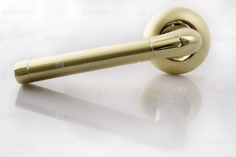 Золотая дверная ручка изолирована на белом фоне