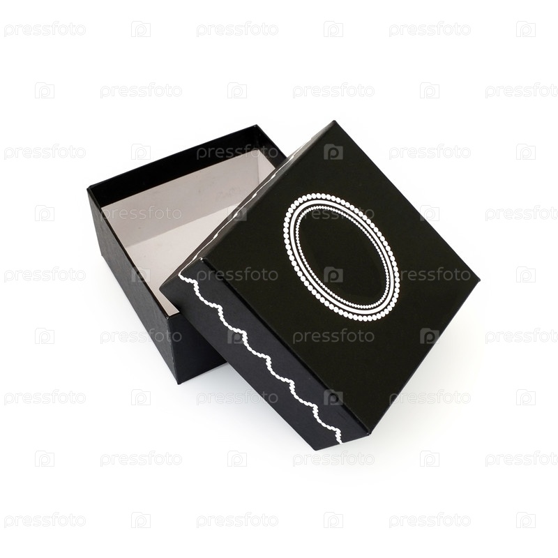 Черная подарочная коробка, изолированная на белом фоне
