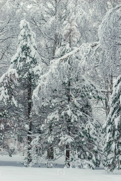 Зимняя фотография - вертикальный зимний пейзаж, елки, покрытые снегом