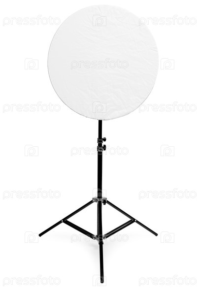 Мобильная круглая вспышка с одним аккумулятором на белом фоне