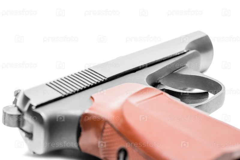 Газовый пистолет на белом фоне крупным планом