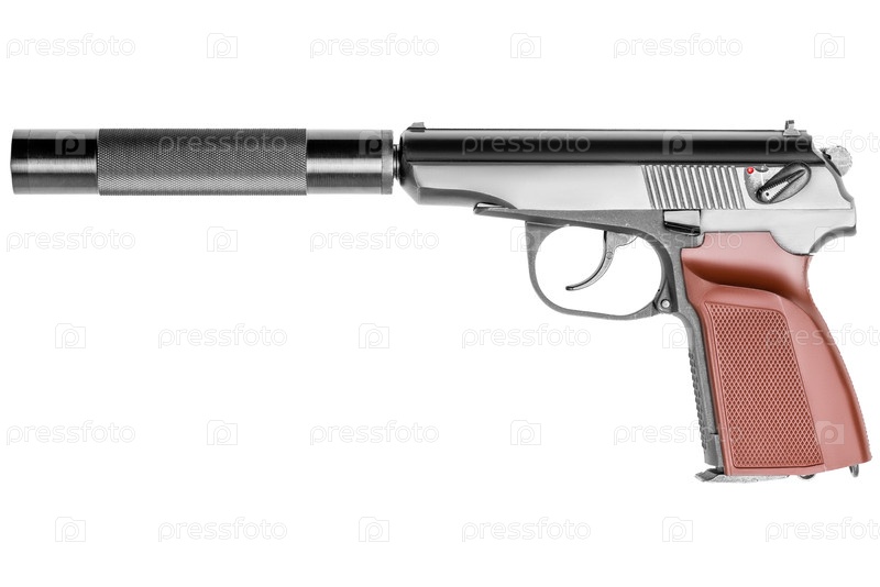 Оружие на белом фоне с глушителем