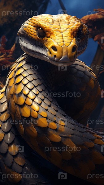 Извилистая змея крупным планом. Искусственный интеллект