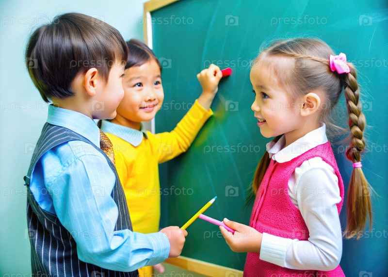 Творческие умы: двое маленьких детей Обнимая доску. Генерирующий ИИ