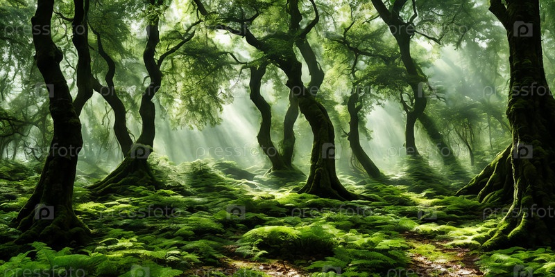 Таинственный лес. Солнечные лучи пронизывают плотный навес. Тени танцуют, шепчут эхо, заманчиво исследуют. Генеративный ИИ