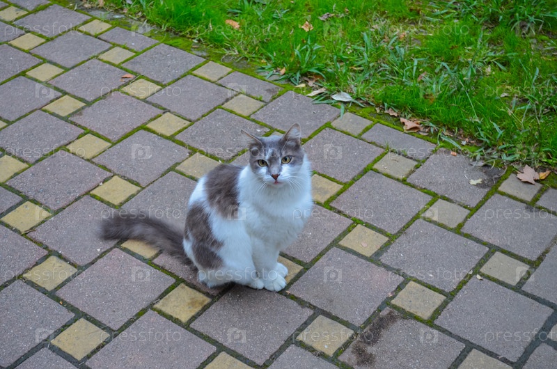 кошка-кошка на пешеходной дорожке