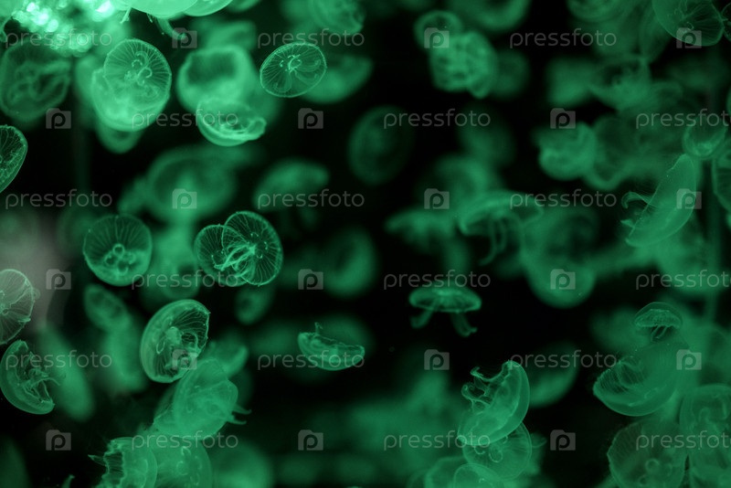 Крупный план медузы в темной воде. Красивый подводный мир