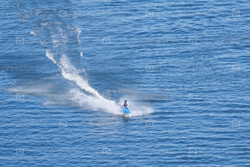 Вид с воздуха на гонки на реактивных лыжах на голубой воде
