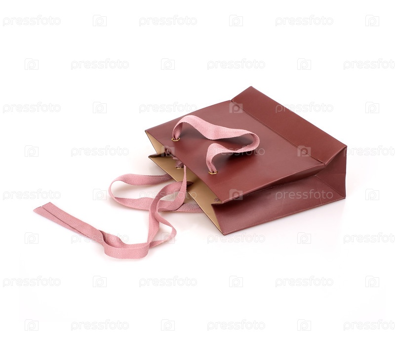 Коричневый бумажный пакет, выделенный на белом фоне