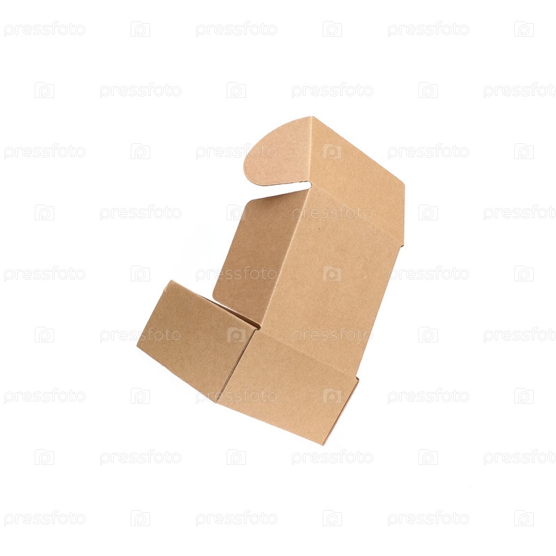 Одна крафтовая коробка, изолировано на белом фоне