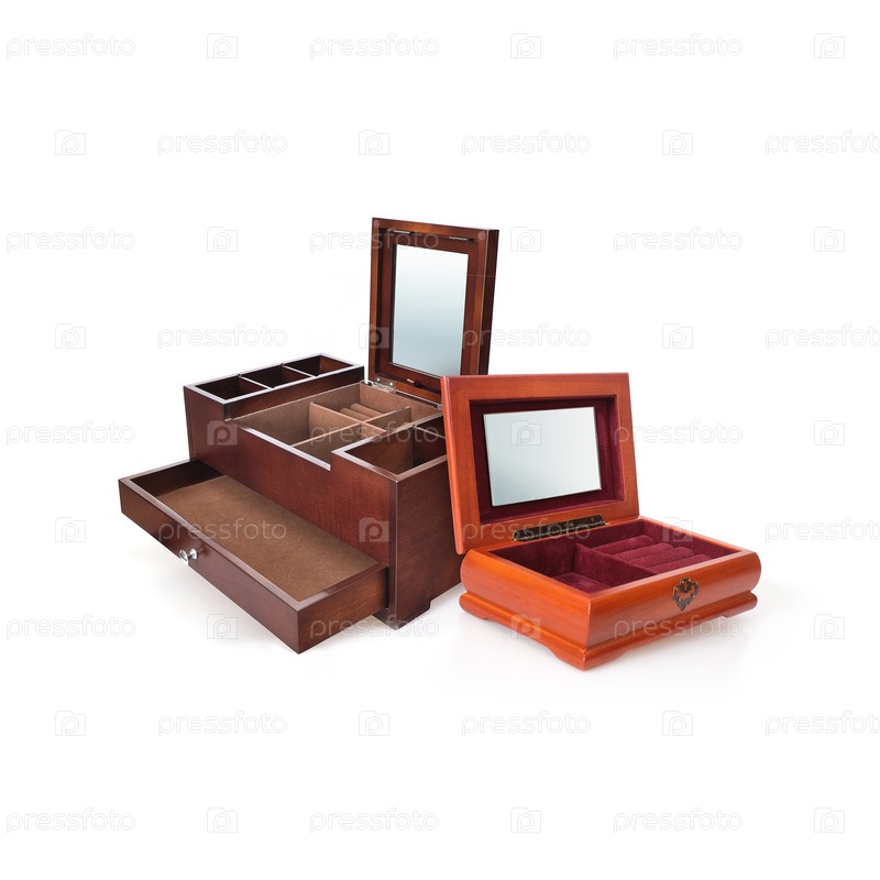 Два деревянных ящика для хранения ювелирных изделий изолированы на белом фоне