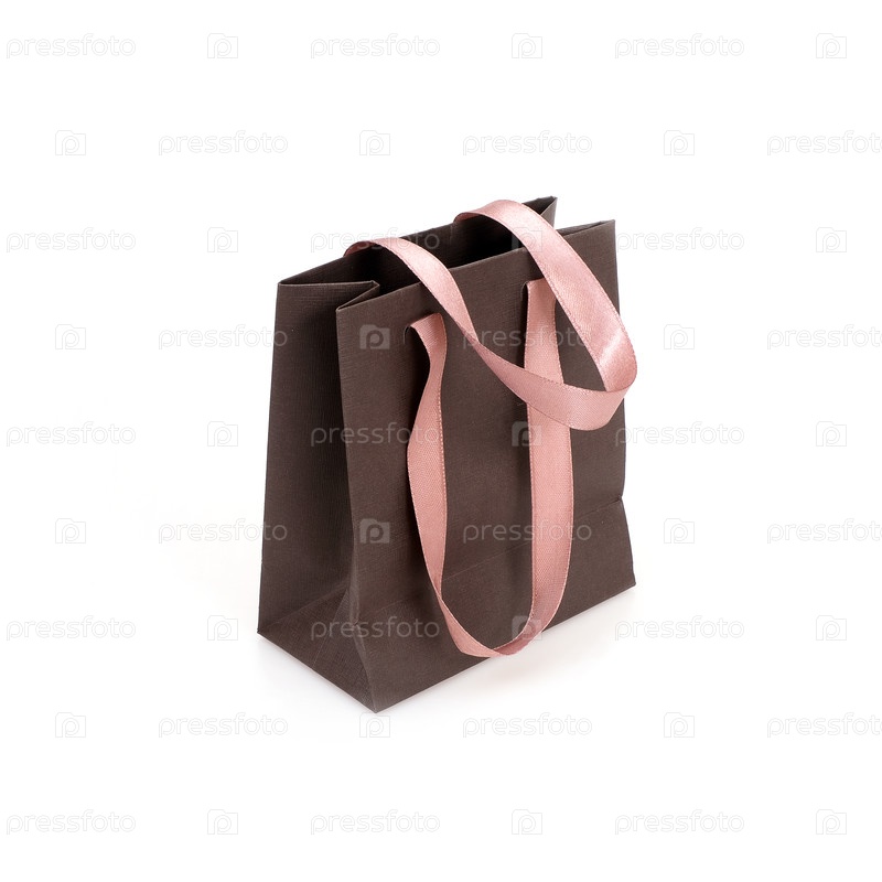 Коричневый бумажный пакет, выделенный на белом фоне