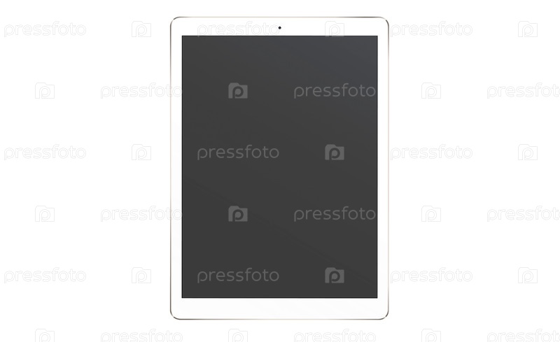 Белый планшет с пустым черным экраном, изолированным на белом фоне