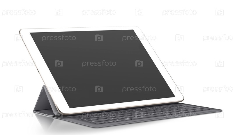 Серо-белый планшет с клавиатурой на белом
