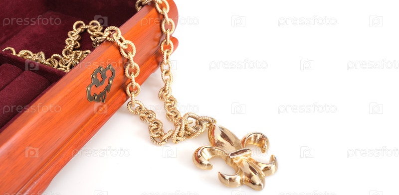 Деревянная коробка для хранения ювелирных изделий изолирована на белом фоне