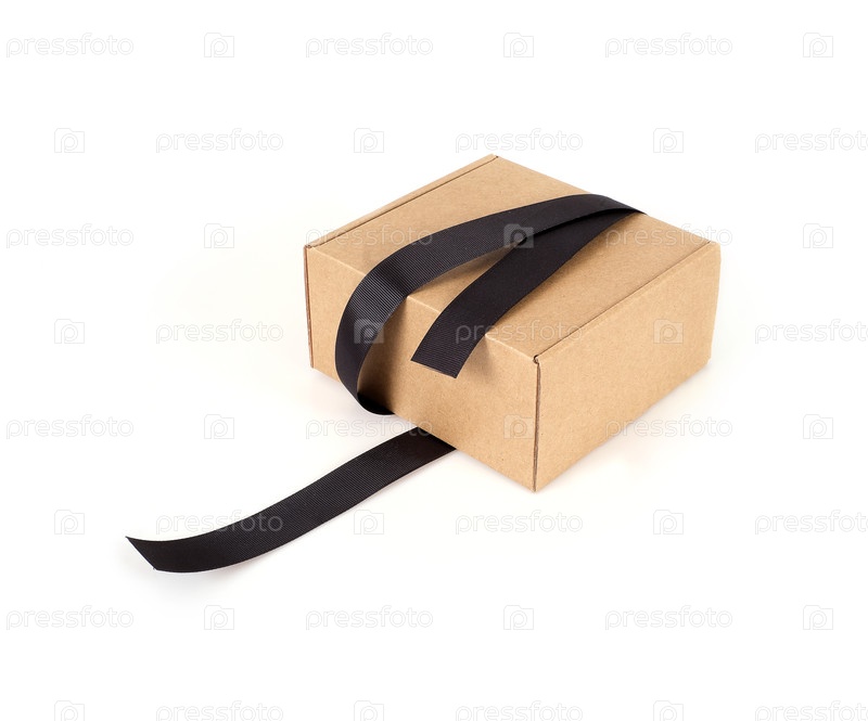 Один ящик с черным луком и лентой, изолированный на белом фоне