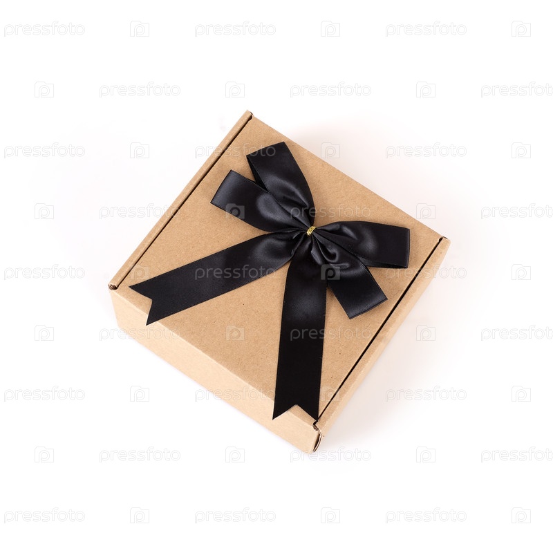 Один ящик с черным луком и лентой, изолированный на белом фоне