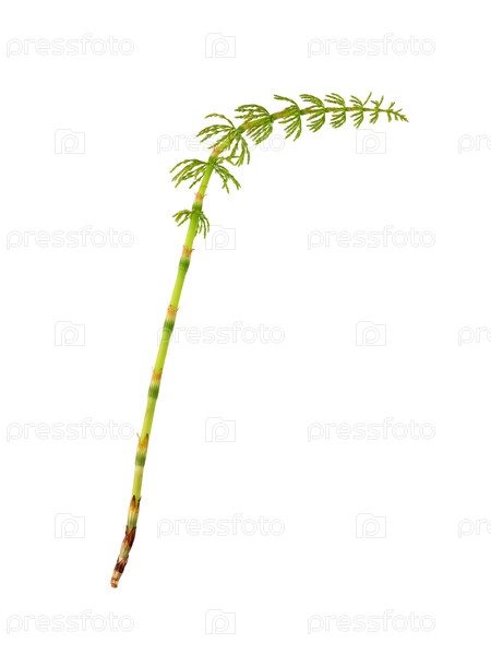 Молодой хвост (Equisetum) сприг Изолированный на белом фоне, готовый вырез
