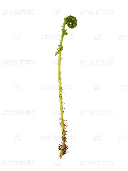 Молодой раскачивающийся папоротник, изолированный на белом фоне, вырез готов