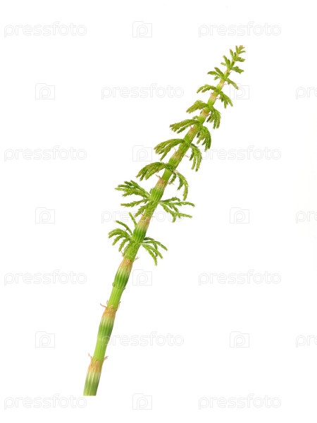 Молодой хвост (Equisetum) сприг Изолированный на белом фоне, готовый вырез