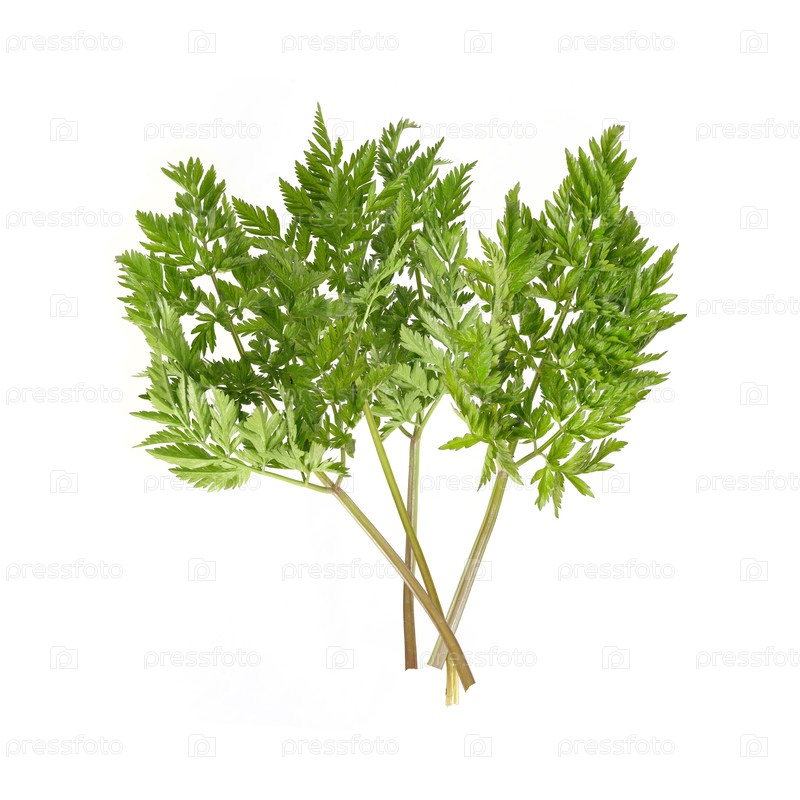 Деликатный чернильник (Anthriscus cerefolium) Сприг Изолирован на белом фоне, готовый вырез