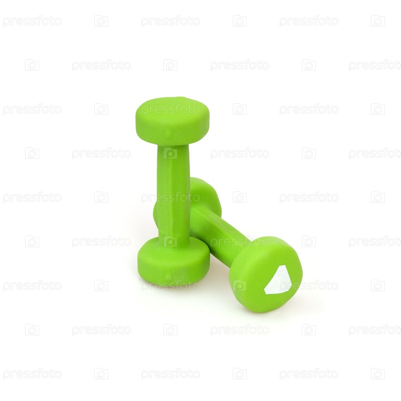Зеленые спортивные гантели, изолированные на белом фоне