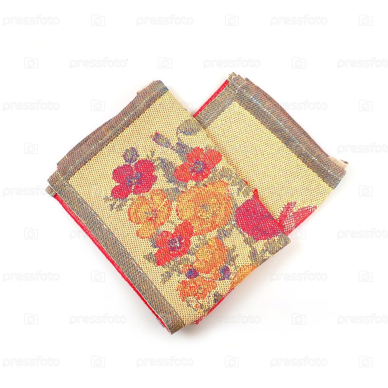 Текстильные кухонные полотенца с цветочным орнаментом изолированы на белом фоне