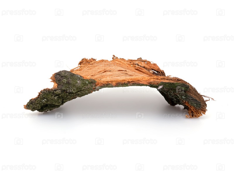 Изогнутый кусок коры дерева, изолированный на белом фоне, текстурированная естественная поверхность, готовый вырез