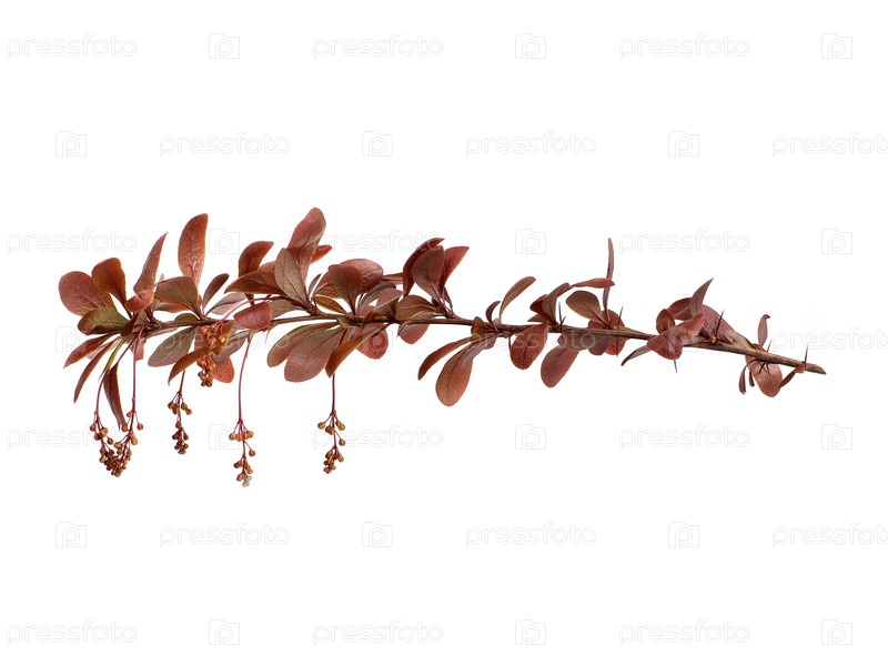 Цветящая красная (Berberis thunbergii) Ветвь Изолирована на белом фоне, готовый вырез
