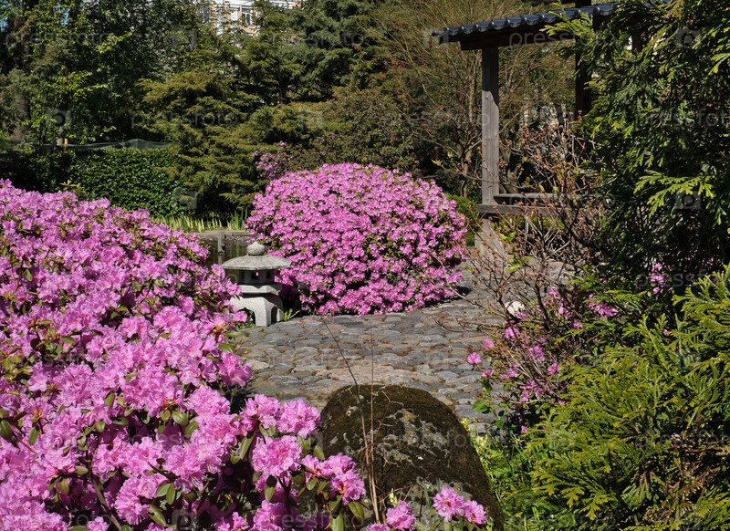 Цветущий розовый рододендрон в японском саду (Санкт-Петербургский ботанический сад)
