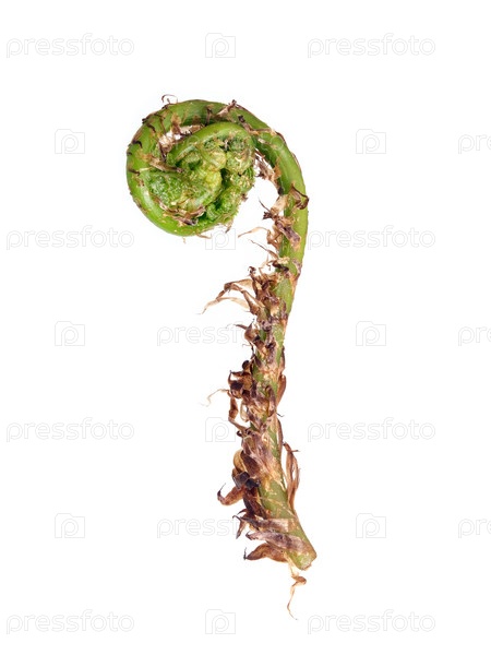 Молодой раскачивающийся папоротник, изолированный на белом фоне, вырез готов