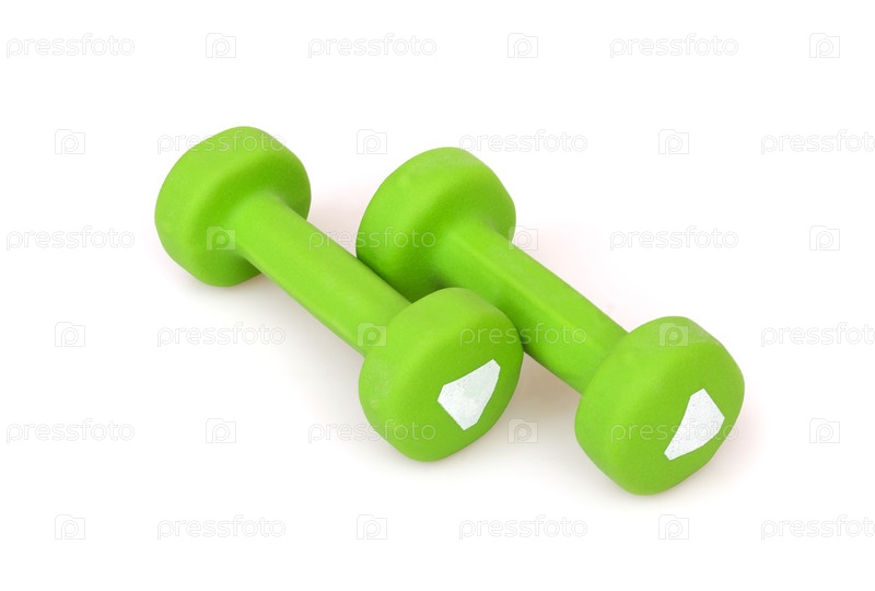 Зеленые спортивные гантели, изолированные на белом фоне