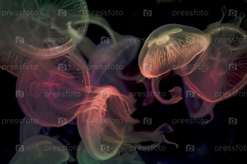 Крупный план медузы в темной воде. Красивый подводный мир