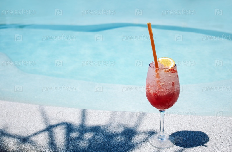 Вкусный ягодный коктейль в элегантном стекле на стороне бассейна