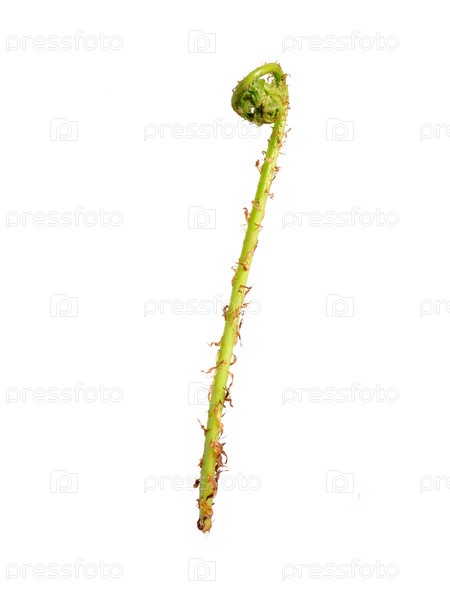 Молодой раскачивающийся папоротник, изолированный на белом фоне, вырез готов