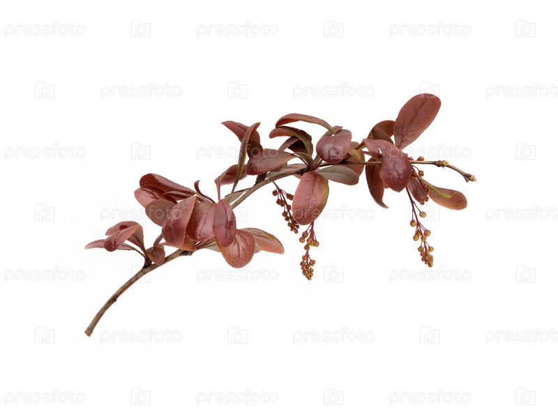 Цветящая красная парикмахерская (Berberis thunbergii) Ветвь Изолирована на белом фоне, готовый вырез