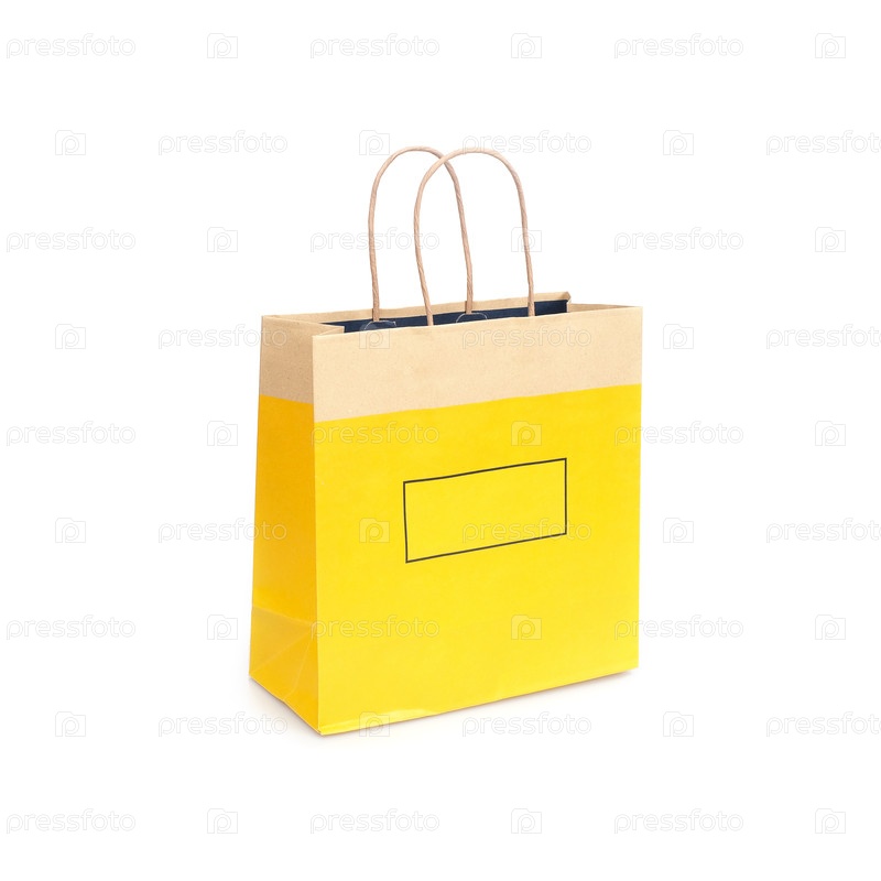 Желтый бумажный пакет выделен на белом фоне