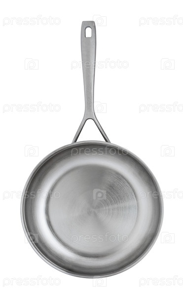 Вид сверху на металлическую сковороду, изолированную на белом фоне
