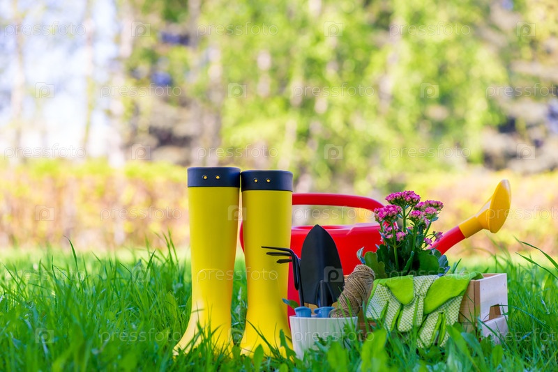 Концептуальные фотоинструменты для работы в саду, объекты для весенних работ закрываются