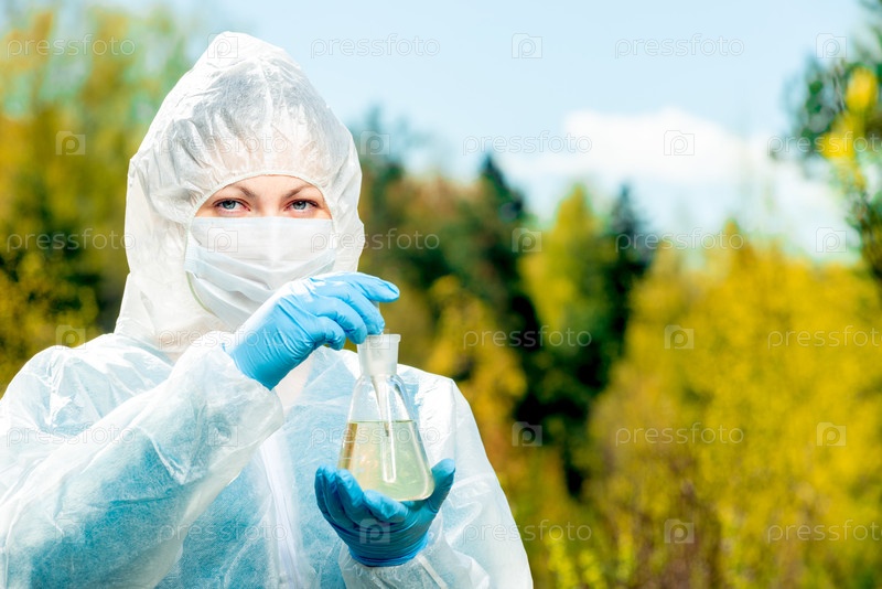 Эколог проводит исследования воды в озере с помощью инструментов, стреляя в природу во время работы